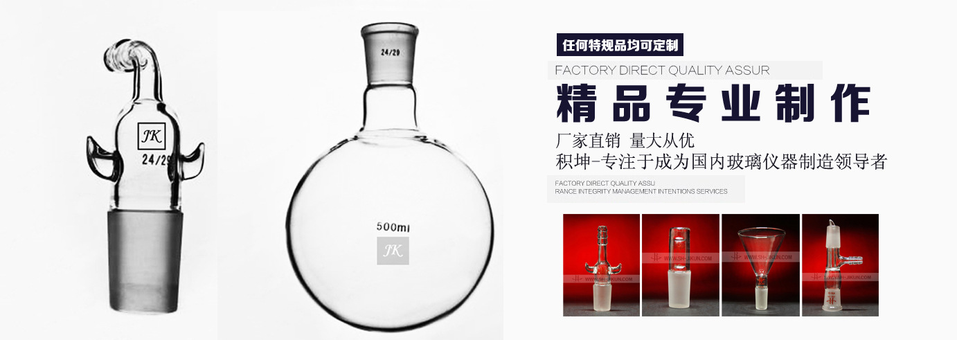 上海積坤化工科技有限公司主要生產銷售"JK"'牌玻璃儀器,勞防用品,辦公用品,實驗室儀器設備等產品,是專業設計,配備化學實驗室,集銷售玻璃儀器、實驗用品、實驗設備于一體的私營法人企業,生產燒瓶,燒杯,試管,比色管,層析柱,恒壓滴液漏斗等玻璃儀器制品,銷售磁力攪拌器,紫外三用分析儀(臺燈式,手提式,暗箱式),反應釜,旋轉蒸發儀,真空泵,電子天平,控溫儀,調壓器等實驗設備用品
